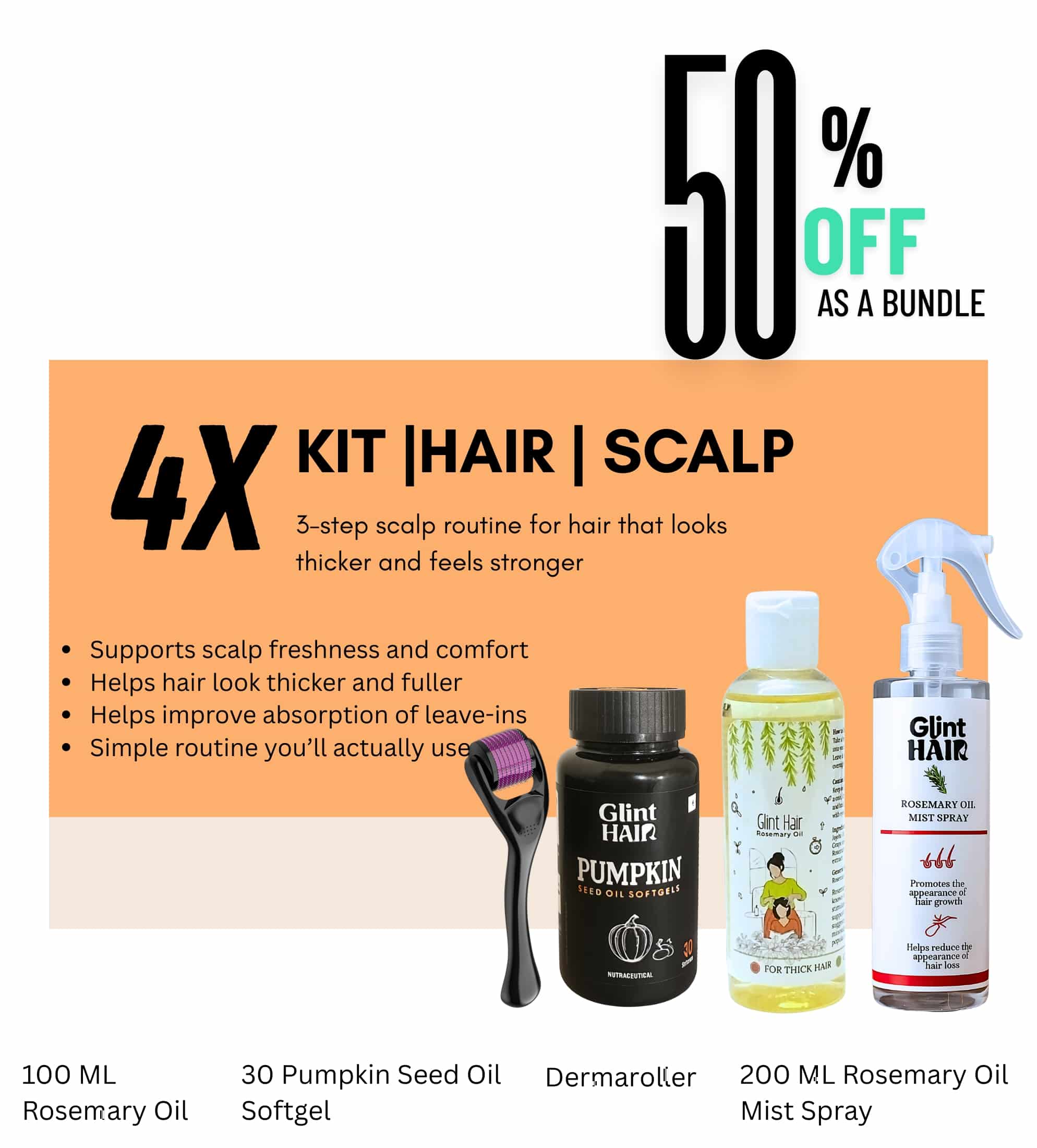 4X Hair Growth Kit — | Rosemary Mist Spray| Rosemary Oil | Pumpkin Seed Oil Softgel | Dermaroller| Rosemary Oil