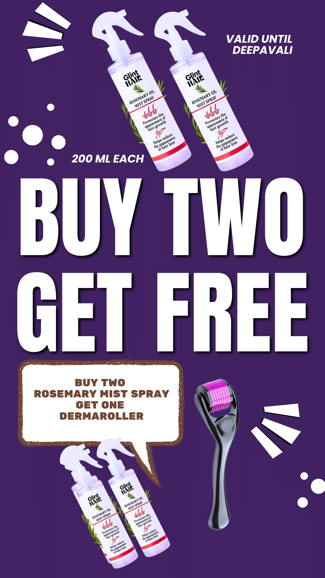 Deepavali offer: Buy two 200 ml Rosemary Mist Sprays and get a Dermaroller absolutely free!